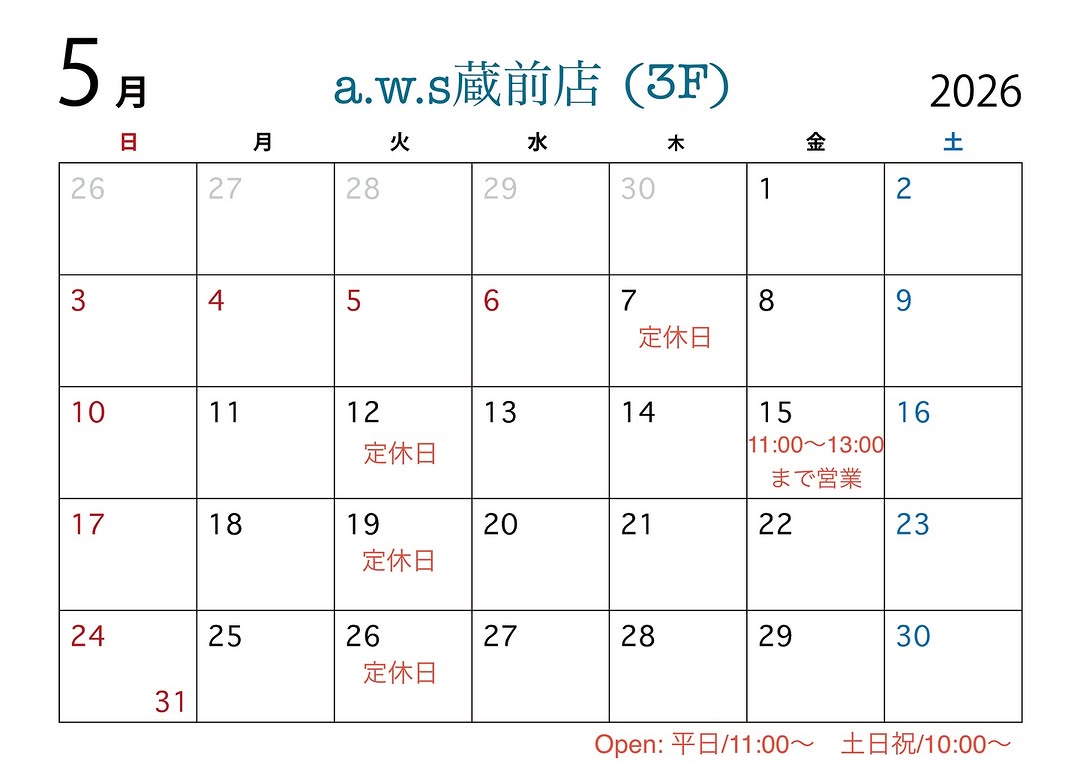 Instagram:a.w.s 蔵前店